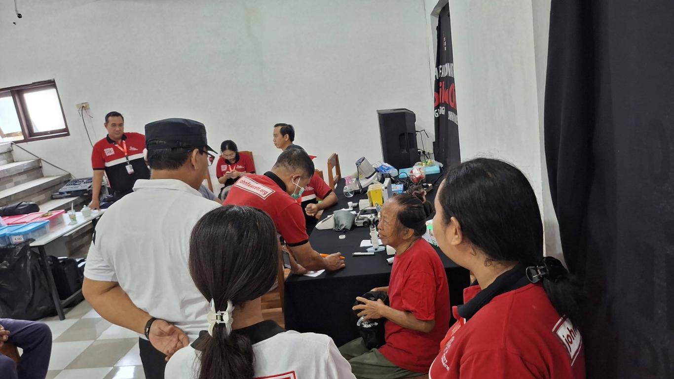 John Fawcett Foundation (JFF) menyelenggarakan pelayanan kesehatan mata gratis untuk warga Desa Banjarasem dan sekitarnya.